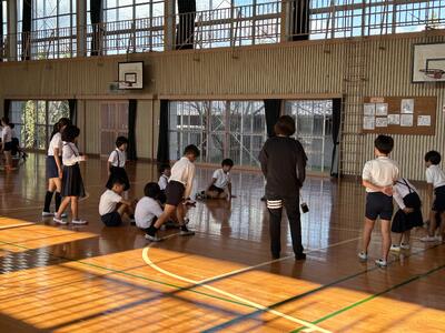 今日は、佐伊津町振興会を中心に、27人の地域の皆様方に来校いただき、昔あそびを教えていただきました。1年生と2年生が参加させていただきました。竹馬、凧上げ、けん玉、ちょんかけごま、おじゃめ、羽付き、他にもたくさんの遊び場を用意してくださいました。終わりの会では、子供達からまた来てください、昔あそびをもっとやりたいなど、たくさんの感想が述べられました。ありがとうございました!