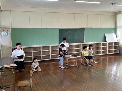金曜日、午後から高学年児童、保護者有志の皆様、職員により、相撲場の準備が行われました。暑い中、水分補給を繰り返しながら頑張った高学年のみなさん、大変でしたね。