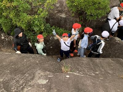 午後の最初の活動は山登り。みんな元気にのぼり、無事に下山。頑張りました。かなりのハードなコースでした。
