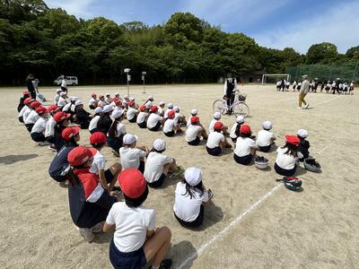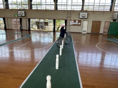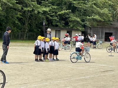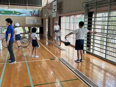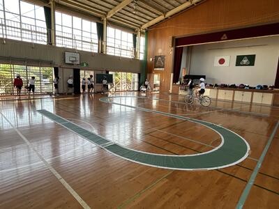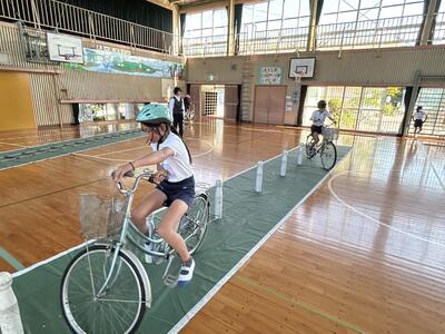今日は3学年ずつに分かれて交通教室を行いました。昨年度も交通教室や自転車部でお世話になった交通安全教会の方々が講師としていらっしゃいました。また川本自転車屋さんが持参いただいた全ての自転車の点検もしてくださいました。