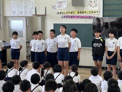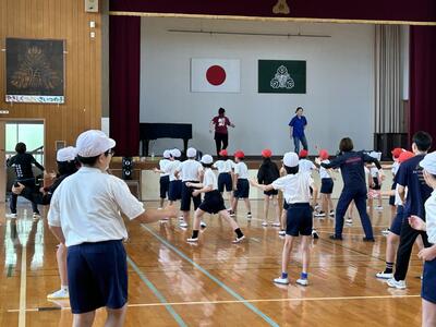 今日は昼休みに5、6年生が頑張ってくれている応援団の練習の声が聞こえてきました。連休明け、張り切っている様子に感謝。さすが高学年。体育では5、6年生の表現としてハイヤ踊りを教えに吉永さんと金子さんが来てくださいました。昨年に引き続きありがとうございます!