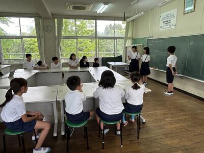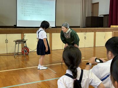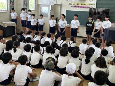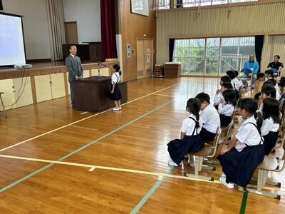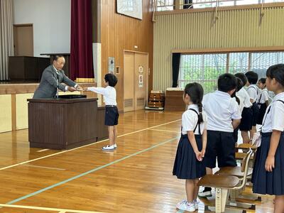 今日、2時間目と3時間目に、1年生を対象に、天草市子ども民生委員委嘱状交付式ならびに認知症サポーター研修を行いました。代表児童への交付のあと、代表児童から、民生委員としてがんばることについての立派な挨拶がありました。