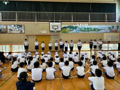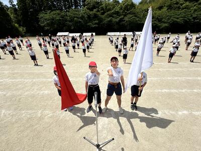 今日は運動会に向け、赤白団に分かれ団長が中心となり団結式を行いました。団長の6年生、そして団員の5、6年生ありがとうございます。団の力、学校全体の力を高めてみんなで頑張りましょう‼️