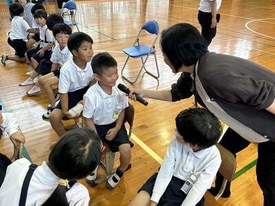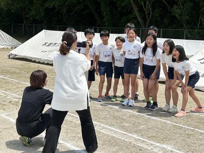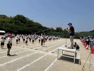 今日は朝から応援団練習、全体練習、昼休みにはケーブルテレビからの取材(六年生からトライアスロン選手へメッセージ)、子供たちの姿が光っていました!