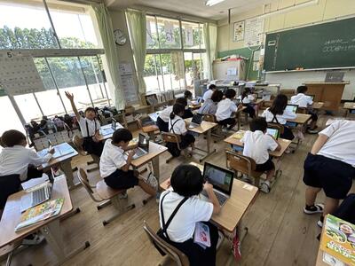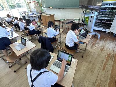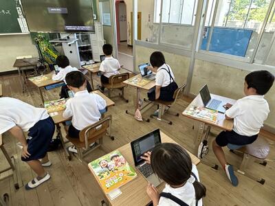 今日は5時間目に、1年生が初めてのタブレット端末操作を行っていました。なかなか慣れている児童も多くてびっくり‼️みんな上手にできました。楽しく絵を描いたり、文字を入力したりしました。