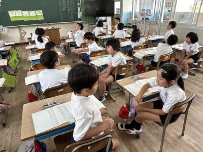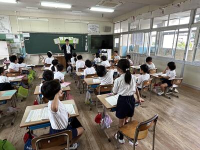 本日、初めての初任者研修の授業研究がありました。指導者は前佐伊津小校長先生の甲斐先生です。中村先生が二年生と頑張りました。