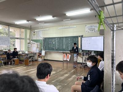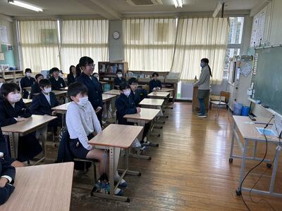 今日は5校時、6校時に天草市の主催により、天草にある企業の方々のお話をうかがいました。今日は天草市にあるゲームソフト開発の会社やCGを手掛ける企業のお話でした。