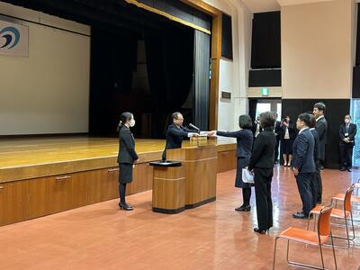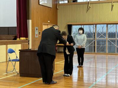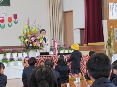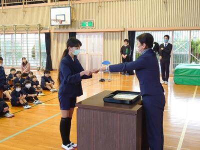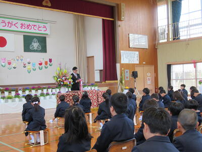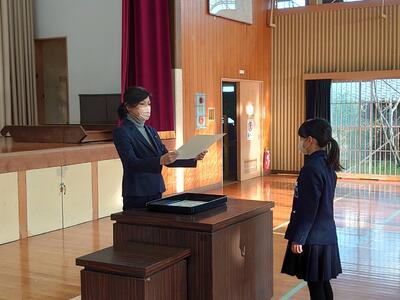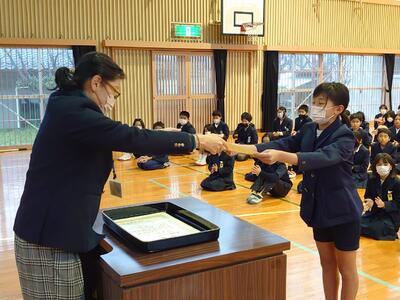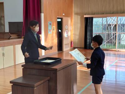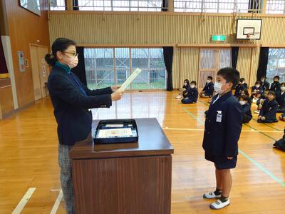 修了式ではまずは修了証を学年代表に渡しました。