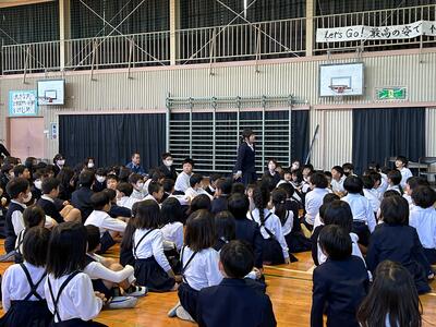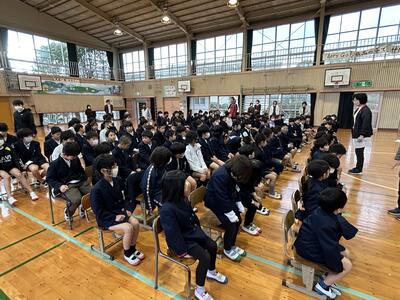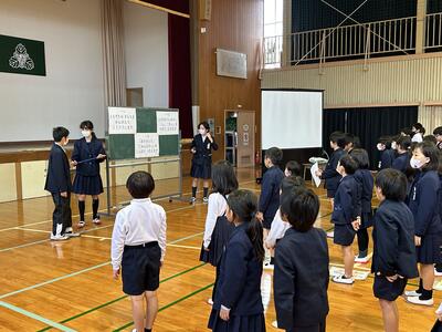 本渡中学校生徒会のみなさんのわかりやすく、また大変立派な態度の説明で、中学生に憧れてしまいました。六年生も立派な中学生になることでしょう!楽しみになりました。