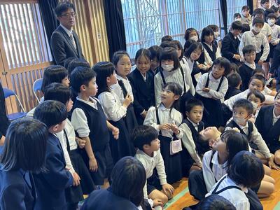 今日は新1年生26人を迎え体験入学を行いました。保護者のみなさまは学校からの説明、新入生は1年生とのふれあいの会を行いました。歌や発表、学校探検を行いました。入学式を楽しみにしております。ご来校いただきありがとうございました。