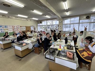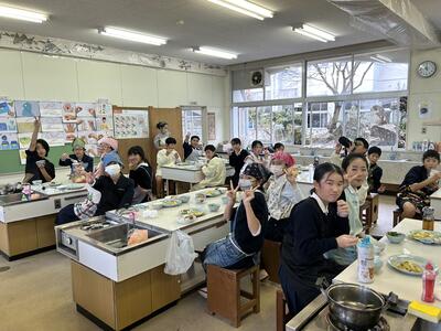 6年生は調理実習を頑張っていました。おいしいおかずやお味噌汁、協力して完成していました!