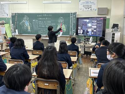 今日は給食記念週間の集会でしたが、寒さのためにオンラインに変更実施しました。泉 先生ありがとうございました。