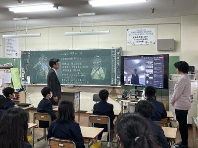 今日は5校時、6校時に天草市の主催により、天草にある企業の方々のお話をうかがいました。今日は天草市にあるゲームソフト開発の会社やCGを手掛ける企業のお話でした。