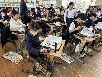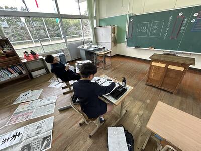 今日は午後から多くの学級が書き初めをしていました。自分の目標をそれぞれに書いていました。