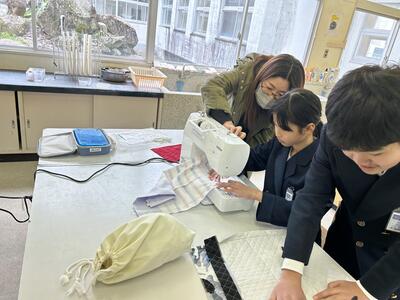 今日も五年生のナップサック製作に保護者の方、先生方、たくさんの応援を受け五年生が頑張っていました。
