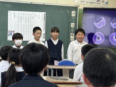 80日間の2学期も、今日で終わりです。1時間目に終業式を行いました。7人のみなさんから2学期の振り返りを発表してもらいました。急遽オンラインに変更したため、昨日の体育館での練習とは違い困ったかも知れませんがみんな堂々発表できました。2学期、楽しいこと、成長する機会、力を発揮する機会、たくさんありました。素晴らしい2学期をありがとうございました。児童、先生方、保護者地域の皆様、全員にお伝えしたいです。お世話になりました。