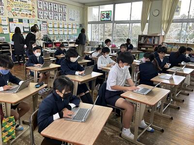 今日は2年生の学級では1時間目からオンラインで授業を実施されていました。オンラインで参加していた2年生は授業で発表もして学級にいるみんなから「同じでーす!」と反応もされていました。オンライン授業が進み保護者の方々に感謝申し上げます。