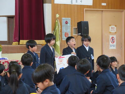 続いて学年代表児童の作文発表。五年生は発表原稿なしでの話、素晴らしかったです。みんなが今年、たくさんのことを頑張ってきたことがわかりました。ありがとうございました。
