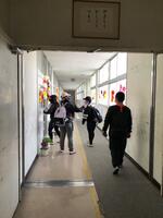 理科室を火元と想定しての訓練でした。児童は担任等の指示により、速やかに避難することができました。