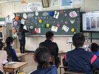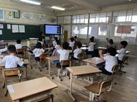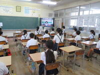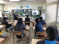 次に、校長の話です。オンラインでしたが、しっかり聴いてくれました。校長が話したことを黒板に書いて、改めて学級で指導する様子も見られました。