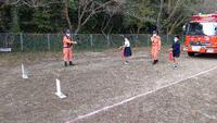 6年生の代表児童が消火器を実際に使ってみる訓練もしました。消火器は「黄色のピンを真上にひく。」「ホースを向ける」「レバーをもつ」という3つの動作で使用することを教えていただきました。代表の4人の子もうまく使うことができました。もちろん、実際に火事の場合、子どもたちは、消火するのではなく、逃げることが第一です。