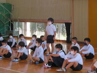 体育館では、1年生が新入学児に対して学校の様子や学習、生活についてお知らせしました。