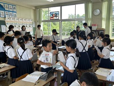今日は3年生の道徳の授業研究会を行いました。指導助言に本渡北小の櫻井指導教諭をお招きしました。授業者は担任の田中先生です。3年生の学級の雰囲気、児童のやる気、素直な心、よさがひかる45分でした。最後に昨年担任の田尻先生から頑張っている3年生の様子を児童へ話され目が輝いていました。