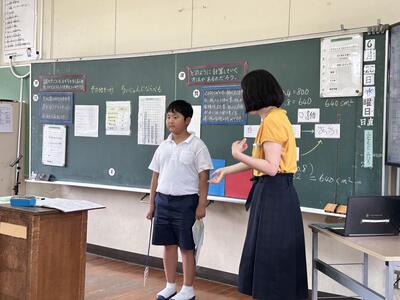 今日は中村先生の初任者研修の日。算数の研究授業と研究会を行いました。