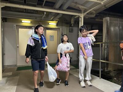 早く寝ていた早起きの男子、遅く寝て遅く起きてきた女子、みんな全員元気はあります。朝の集いを済ませて2日目スタート!