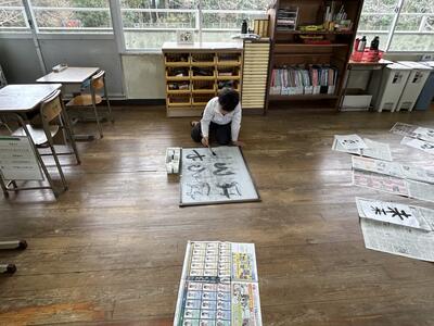 今日は午後から多くの学級が書き初めをしていました。自分の目標をそれぞれに書いていました。