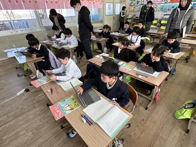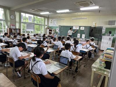 今日は2年生の学級では1時間目からオンラインで授業を実施されていました。オンラインで参加していた2年生は授業で発表もして学級にいるみんなから「同じでーす!」と反応もされていました。オンライン授業が進み保護者の方々に感謝申し上げます。