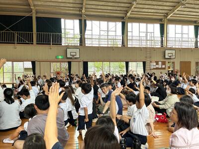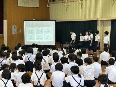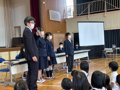 本渡中学校生徒会のみなさんのわかりやすく、また大変立派な態度の説明で、中学生に憧れてしまいました。六年生も立派な中学生になることでしょう!楽しみになりました。