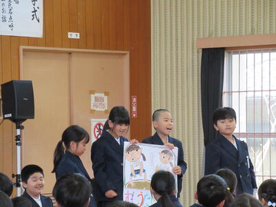 今日、2時間目と3時間目に、1年生を対象に、天草市子ども民生委員委嘱状交付式ならびに認知症サポーター研修を行いました。代表児童への交付のあと、代表児童から、民生委員としてがんばることについての立派な挨拶がありました。
