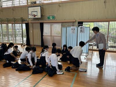 6年生の社会科わたしたちのくらしと政治に関わる授業を濱洲大心さんに講師としてお願いしました。政治について、子供たちに体験させながら理解をさせていただきました。