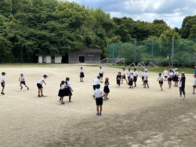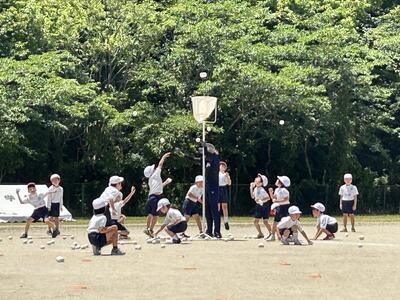 今日は教育実習札本先生の実習最終日。四年生はお別れ会。札本先生は、ドッジボールも強い!楽しそうでした。