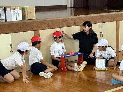 今日は2時間目から4時間目まで体力テストを行いました。1年生は6年生が、2年生は5年生がお世話してくれ、子供たちで各テストに臨んでいました。みんな、体力テストもやる気いっぱい取り組んでいました。