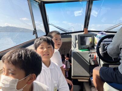 5年生の午後の学びの様子をお知らせいたします。いま、船旅のようです。まもなく本渡港着の模様。充実した体験学習の様子が窺えます。