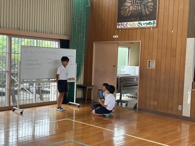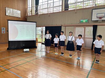 今日は昼休みに高学年のみなさんが月曜日の児童会総会の練習をして頑張っていました!ありがとうございます