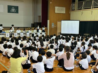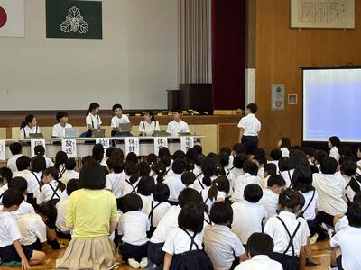 五年生、六年生を中心に取り組んでいる委員会活動。今日は委員会活動のまとめの会である児童会総会を行いました。七つの委員会が学校をよりよくするために頑張ってくれていたことを全校のみなさんが知ることができました。委員会のみなさん、ありがとうございました。