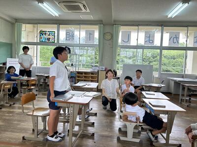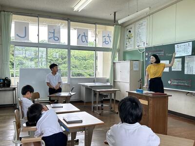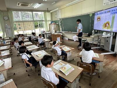 本日、初めての初任者研修の授業研究がありました。指導者は前佐伊津小校長先生の甲斐先生です。中村先生が二年生と頑張りました。