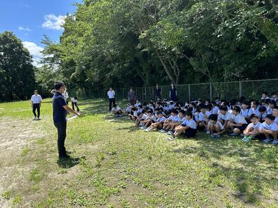今日は天草警察暑の方にお越しいただき不審者対応避難訓練を実施しました。六年生教室への侵入、全校連絡、避難とみんなが真剣に取り組みました。避難の方法について、先生方へもお話していただきました。夏休みを迎えます。自分を守る方法についてしっかり考え今日のおまわりさんのお話を記憶に留めてほしいです。