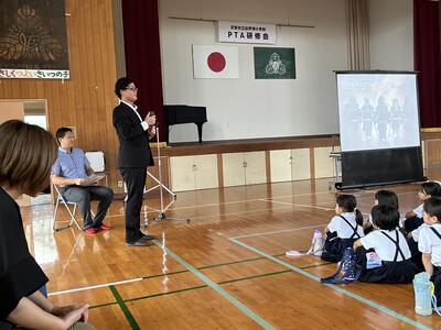 7月5日金曜日、本日午後から参観、PTA研修、学級懇談会を行いました。PTA研修は本校PTA副会長である松本様から命を守る防災のご講話をいただきました。研修は児童保護者揃っての研修となり多くの皆様にご参加いただきました。子供たちは授業でも研修の防災の話でも、命について深く考える1日となりました。