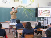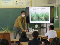 10月27日(木)、5年生の総合的な学習の時間に、サトウキビ栽培から黒砂糖の製造に取り組んでいらっしゃる冨山さんにおいでいただき、お話を伺いました。冨山さんには2年前にもおいでいただいています。