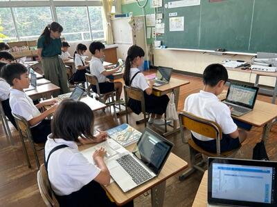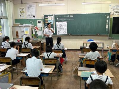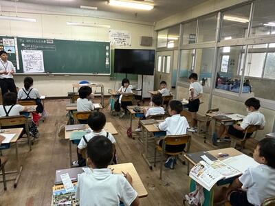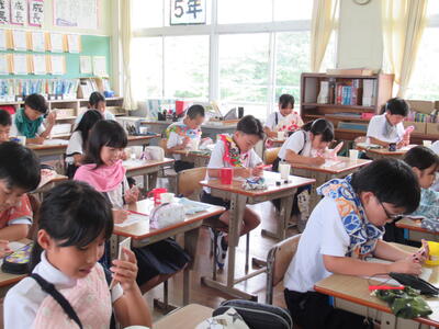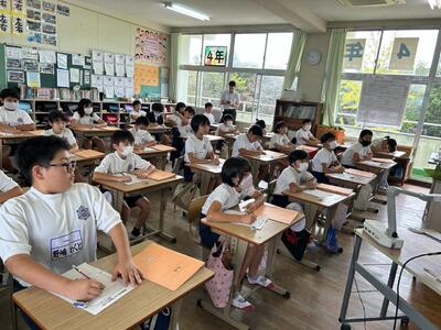 今日は天草漁協から高崎さんをゲストティーチャーとして、五年生が環境学習を行いました。イルカが生息する天草の海。どれほど幸せなことか教えていただきました。また普段身近なもののよさに気付かされていないことや好きなことに徹底的に取り組むことなど、イルカのお話をとおして気付かされた大切なこともたくさんありました。集団宿泊教室を終えた五年生だからこそ、改めて環境についてしっかり考え、自分にできることを考えているようでした。