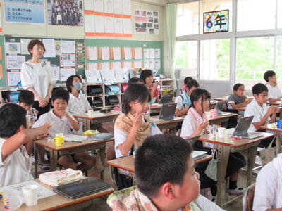 6月28日水曜日、5時間目に学校歯科医の松田先生のご指導のもと歯の磨き方やむし歯ができるまでについて学びました。6月は歯を大切にする学びをどの学級でも実施し、自分の体を見つめ直し大切にできるよう考えています。