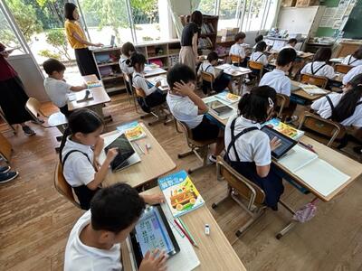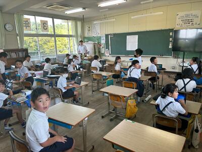 さあ、2週目。2学期の本校の職員による校内研修では算数の授業の充実とタブレット端末の児童の活用を重点に掲げています。授業の中で児童が活用できるようにすること、ノートや鉛筆といった自分の考えを表現するための一つの手段としてタブレットを使いこなせるようになることを目指しています。そのために、まずはタブレットに十分慣れることができるよう夏休みの持ち帰りや活用を行ってきました。大変お世話になりました。