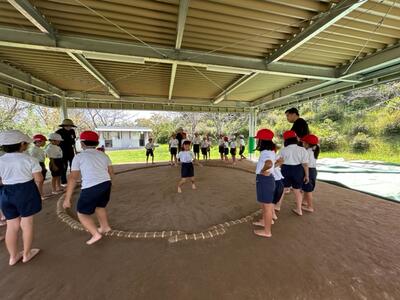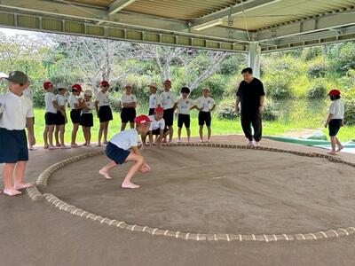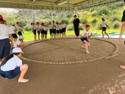 お世話になります。今日は六年生、二年生が相撲の稽古を行いました。二年生が今週ラストの土俵での稽古を終えました。来週は二年生は保育園のみんなと相撲の稽古を行うので張り切って練習していました。