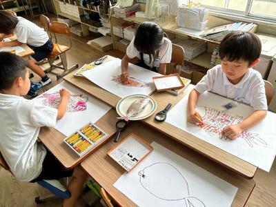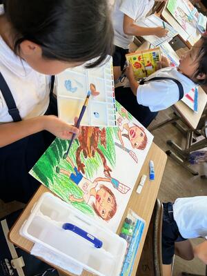 一年生が今度は夏の水泳の様子の絵を仕上げていました。いきいきとした表情を描く一年生に驚き、子供たちの力の素晴らしさを改めて感じました。