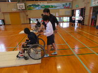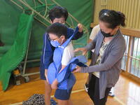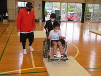 慈晃園にお勤めの金子様、社会福祉協議会の泉様にご来校いただき、福祉施設の説明をしていただいたり、福祉体験をさせていただきました。地域学校協働推進員の金子様や保護者の方もお手伝いしてくださいました。