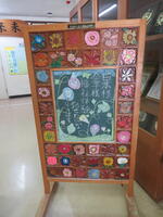 ↓この日、4年生の子どもたちが作成した職員玄関のウェルカムボードです。